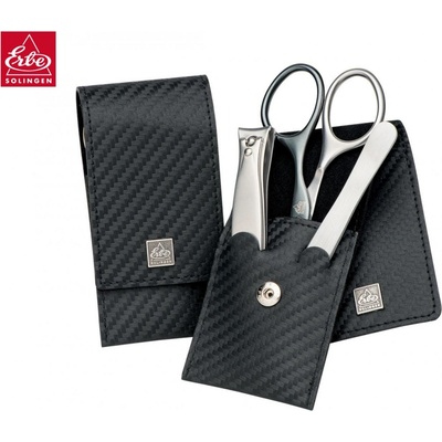 Pánská kvalitní manikúra 9495 Carbon černá Značka Erbe Solingen vyrobila speciální kolekci manikur pro muže Carbon Inox, která má pouzdro z pravé kůže s karbonovým vzhledem....
