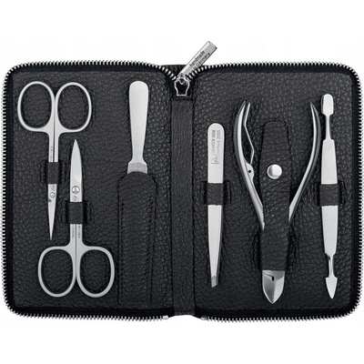 Luxusní manikúrová sada pro muže je vyrobena z černé syntetické kůže a matného chromu se zipovým zapínáním. Zárukou výjimečné kvality je místo výroby manikúrových nástrojů,...