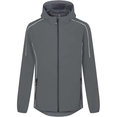 Pánská softshellová bunda s odepínací kapucí. 3 přední kapsy na zip, 2 vnitřní kapsy. Nastavitelná šíře rukávů plastovým suchým zipem, stahovací pas. Reflexní prvky v barevném...