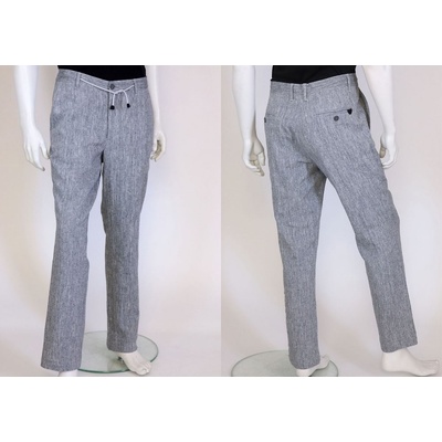 Kalhoty v šedomodré barvě ve střihu Chino ve volnějším rovném střihu. Mají klasické dvě přední a dvě zadní kapsy. Přední kapsy jsou zešikmené. V pase je možné stáhnout tkaničkou. Vyrobeny ze 72 % lnu a 28 % bavlny. Česká výroba. Popis střihu: Klasická středně vysoká...