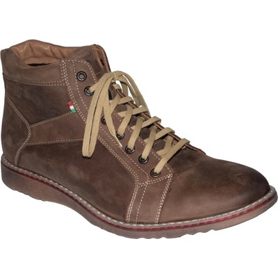 Pánská kotníková zimní obuv na šněrování má kožený svršek v hnědé barvě s prošíváním. Uvnitř je podšívka zateplená kožíškem, stélka je taktéž zateplená filcem. Horní okraj má...