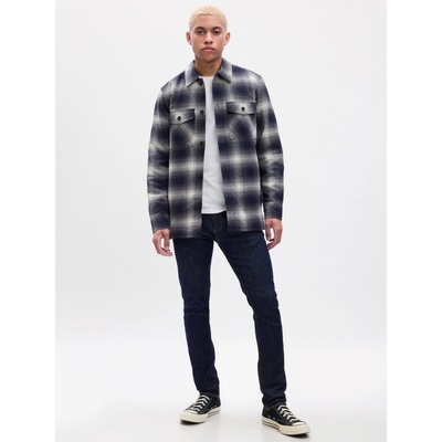 Pánské extra pružné džíny GAP SKINNY ve střihu skinny. Mají pevný pas se zapínáním na zip a knoflík. Prošité kontrastní nití celý design dotváří.