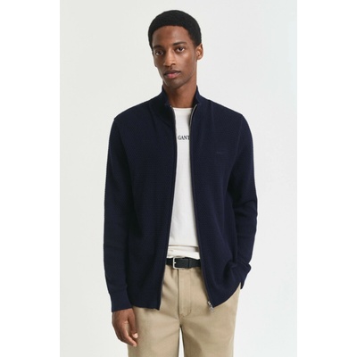 Gant Cotton Textured Zip Cardigan Evening Blue