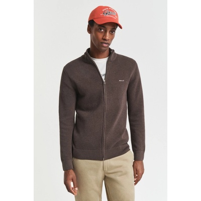 Gant Cotton Pique Zip Cardigan Brown Melange