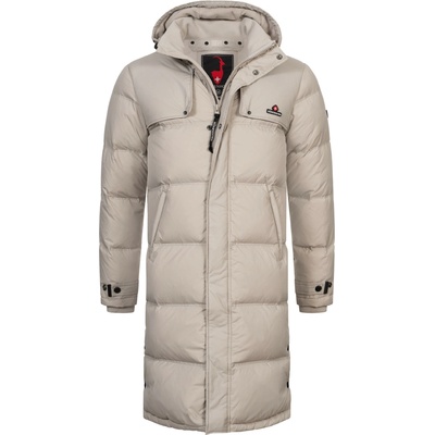 Pánský silně zateplený dlouhý zimní péřový kabát - zateplen kachním peřím 700 cuin. Dvouvrstvý laminát, podšívka, prodloužený střih, integrovaná kapuce s odnímatelnou kožešinou, příruční kapsy, vnitřní kapsa na mobil. Voděodolnost/prodyšnost 7000/5000. Barva khaki.
