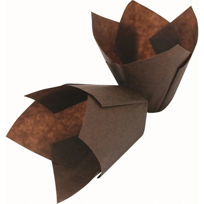 Papírové košíčky na muffiny hnědý "Tulipán" 95 mm, 1000 ks Speciální papír odolný tuku, gramáž: 50 g / m², tepelná odolnost do max. 180 ºC. Košíčky ve tvaru tulipánu, hnědá...
