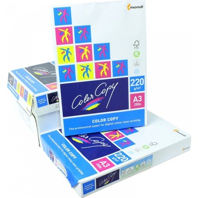 Mondi A3 Color Copy 220g, 250 složek (420 x 297mm). Povrch Satin. Speciální papír určený pro náročný tisk v barevných kopírovacích strojích a barevných laserových tiskárnách....