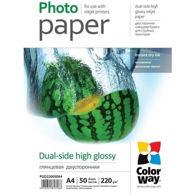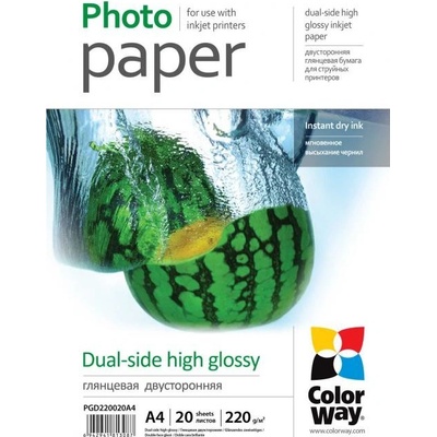 COLORWAY Dualside High Glossy A4; Určený pro oboustranný tisk. Tento papír má hladký, lesklý povrch, odolný vůči vodě. Fotografie vytištěné na tomto papíře mají bohaté a živé...