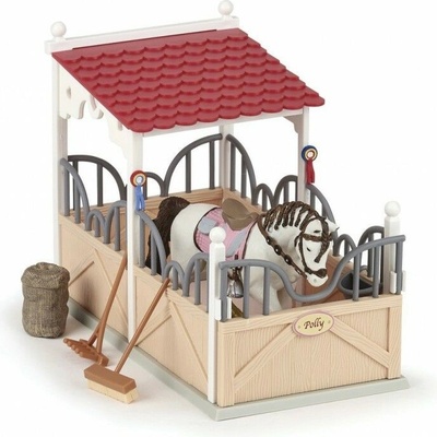 Ručně malovaná značková figurka firmy Papo France. Box pro koně s příslušenstvím - DODÁVÁ SE BEZ KONÍ.