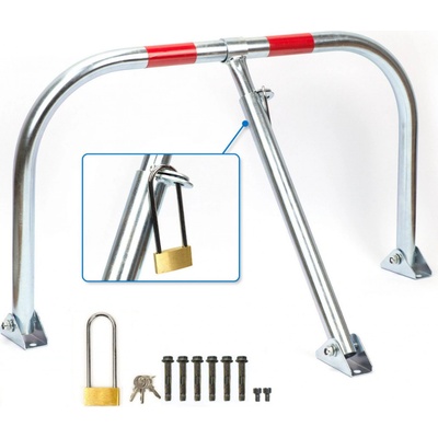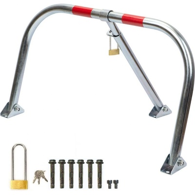 · mechanická kovová sklopná parkovací zábrana · zamykání visacím zámkem který je součástí balení · upevňovací materiál je přiložen