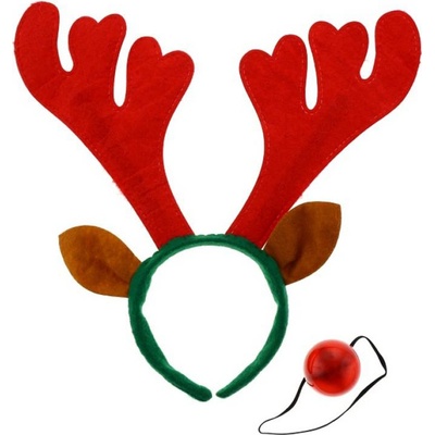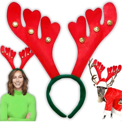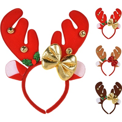 Čelenka se sobími parohy zdobenými rolničkami, lesklou mašlí a doplňky. velikost: pro dospělé rozměr: 24 x 25 cm hmotnost: 30g materiál: 100% Polyester, PP, kov Cena je za 1 kus. Mix 3 motivů - dodáváno dle skladové dostupnosti