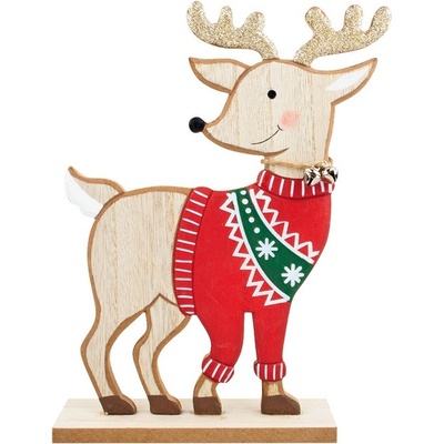 Dřevěný sob ve svetru se zlatými parohy na podstavci je krásná přírodní dekorace do vašeho interiéru, které zútulní váš byt. Přineste si Vánoce do svého bytu a užívejte si tak ničím nerušenou vánoční atmosféru. motiv: sob ve svetru materiál: dřevo rozměry: 17 x 23 cm