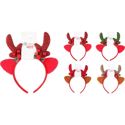 Vánoční čelenka se zdobenými sobími parohy. - velikost čelisti: pro děti rozměr: 195 x 210 mm hmotnost: 20g materiál: 100% Polyester, PP Cena je za 1 kus / variantu vybíráme náhodně dle skladové dostupnosti.