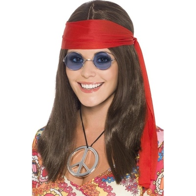 Ke kostýmu hippies potřebujete několik doplňků, jako je dlouhá hnědá paruka. Neměl by vám chybět ani knír a červený šátek, kterým upravíte paruku. To vše obsahuje sada doplňků.Podrobné informace o pro