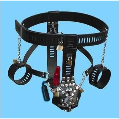 Mužský pás cudnosti s vibračním análním kolíkem a pouty. Uzamykatelný , univerzální velikost. Obvod pasu : nastavitelný v rozsahu 60 - 108 cm Obvod pout na ruce : nastavitelný...