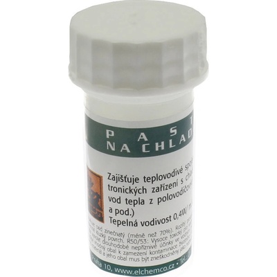 Pasta na chladiče ELCHEMCO 25ml Používá se na zlepšení přechodu tepla u extrémně namáhaných elektronických součástek (procesory v počítačích, výkonové tranzistory, IO)....