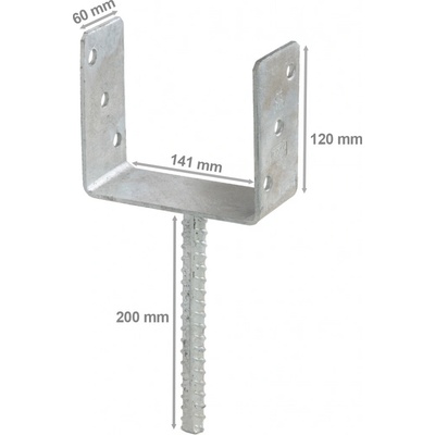 Kotevní patka sloupku na dlouhém trnu typu "U" PS140/500, 141x60x124x4mm umožňuje připevnění dřevěných prvků do betonu. Dlouhý trn 50cm umožňuje vysunutí spodní části trámu až...