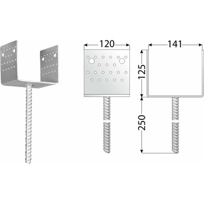 Pozinkovaná patka sloupu DOMAX PS 140U 141 x 120 x 60 x 4 mm 1 ks Patka sloupu PS je vyrobená z žárově pozinkované oceli a slouží pro připevnění dřevěných sloupů do betonu....