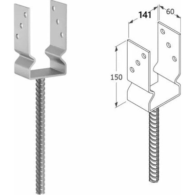 Kotevní patka sloupku na dlouhé trubce typ "U" PS140U/R500, 141x60x124x4mm umožňuje připevnění dřevěných prvků do betonu. Dlouhá trubka 50cm umožňuje vysunutí spodní části trámu...