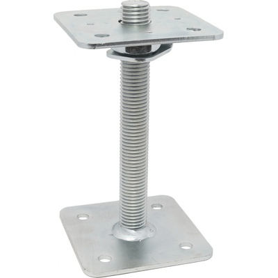 Kotevní patka s volnou maticí pro výškové nastavení 80x80x100 mm, M16, zinek Rozměry patky: 80x80 mm, výška 100 mm, síla materiálu 4 mm Rozměry trnu: M16 Celková výška: 100 mm