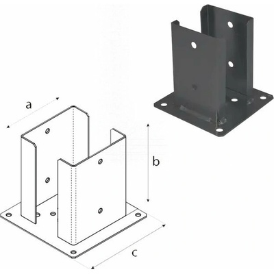 Široká kotevní patka sloupku je určena pro připevnění hranolů do betonu. K připevnění hranolu je u této patky k dispozici mnoho otvorů pro vruty. Patka je určena pro hranoly...