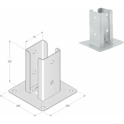 Domax šroubovací patka sloupku typu U PSSOZ 80 - 81 x 80 x 150 x 4.0 mm 6 ks