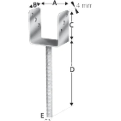 Kotevní patka sloupku ve tvaru "U" je určena pro připevnění hranolů do betonu. Tato patka je vhodná pro dřevěné hranoly široké 90 mm.