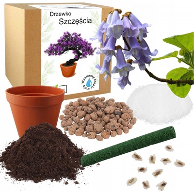 SADA PRO PĚSTOVÁNÍ BONSAJE ŠTĚSTÍ PAULOWNIA PLSTNATÁ K VÝSADBĚ Obsah sady: - ✅Květináč 13 cm - ✅10x semena Paulownia plstnatá - ✅Substrát 1 litr (pečlivě vybraná směs zeminy a...
