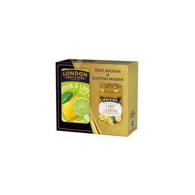 Dárková sada obsahuje čaj London Herb - citrón s limetkou a zavařeninu Mackays - limetka s citrónem.