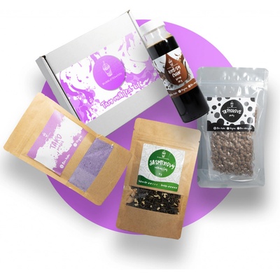Sada obsahuje: - 50 g černého nebo zeleného jasmínového čaje (podle toho, jakou variantu si zvolíte) - 200 g prášku s příchutí kořene taro - 250 g tapiokových perel - 350 g...