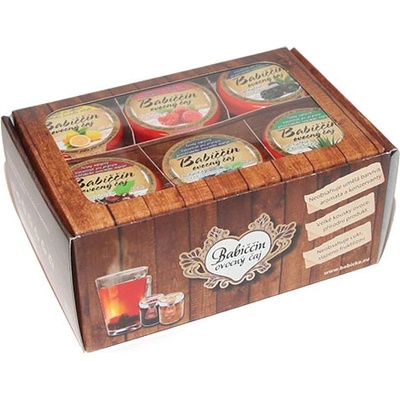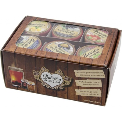 Babiččin ovocný čaj - dárkové balení 6ks Babiččin ovocný čaj je nápojový koncentrát, někdy také nazývaný pečený čaj. Všechny složky produktu jsou čistě přírodního původu, bez...
