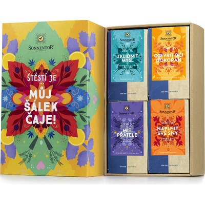 Sonnentor Dárková kazeta čajová Štěstí 118,8g Dárková kazeta čajová Štěstí je... od výrobce Sonnentor. Produkt v bio kvalitě. Pěstováno metodou ekologického zemědělství....