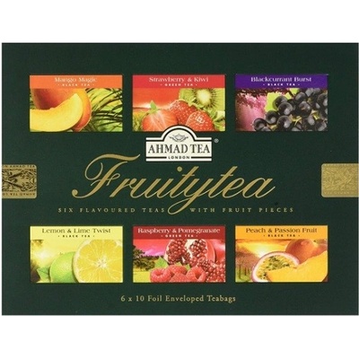 Sada 60 porcovaných černých a zelených čajů ochucených ovocem. Složení: - Černé čaje: Lemon and Lime Twist, Blackcurrant Burst, Mango Magic, Peach and Passion Fruit - Zelené...