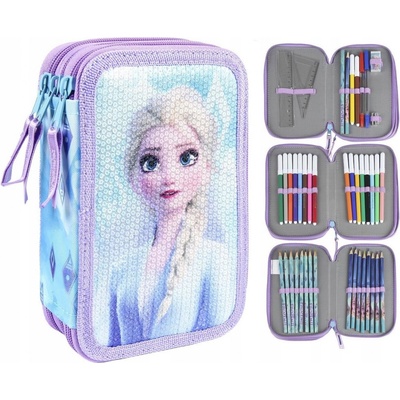 Jednopatrové školní pouzdro se dvěma klopami. Díky gumovým úchytům se do nich vejde celkem dvacetjedna pastelek, tužek a fixek. Tři širší úchyty poslouží na pravítko,...