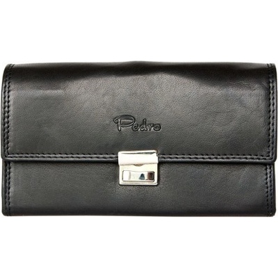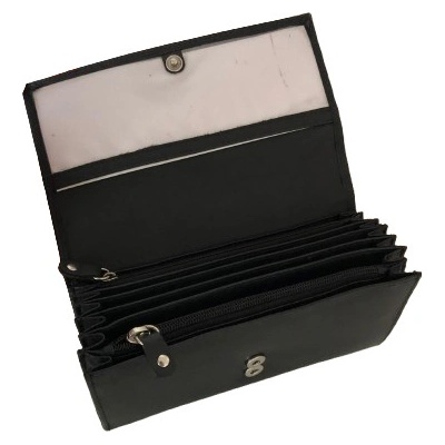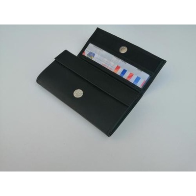 Černá bytelná kožená peněženka - klasická kasírtaška - kasírka se zapínáním . Rozměr 18 x 10 cm.