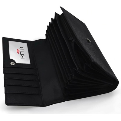 KOŽENÁ ČÍŠNICKÁ KASÍRKA. 8 přihrádek na bankovky, 2 zipove kapsy, pruhlredné pouzdro, kapsa na zadní straně.Barva: černá Rozměry: 19,5 cm x 10,5 cm