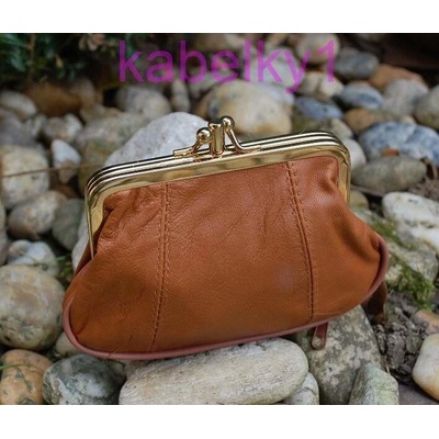 Dámská hnědá koňaková kožená malá peněženka na mince, případně různé drobnosti, ozdobně štepovaná, zlaté kování, dvě samostatné přihrádky s kovovým uzávěrem, oddělení na zip a...