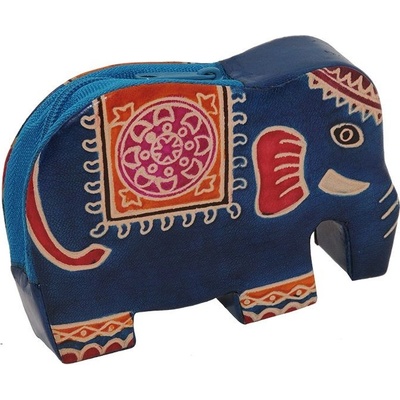 Pouzdro na drobnosti nebo malá peněženka na drobné v originálním tvaru slona. Modrá, ručně malovaná pravá kůže. Peněženka uzavíratelná na zip. Jedinečný design kůže je známý...