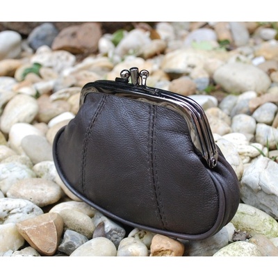 Dámská hnědá kožená peněženka na mince, případně drobnosti, Ozdobně štepovaná, šedé kování, dva samostatné složky a kapsa na zip na zadní straně. Do peněženky se vejdou i...