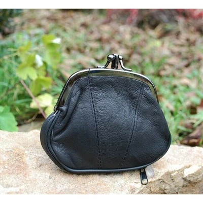 Dámská černá malá peněženka na mince z kůže, případně různé drobnosti, ozdobně štepovaná, tmavé kování, dvě samostatné složky s kovovým uzávěrem a malá kapsa na zip. Do...