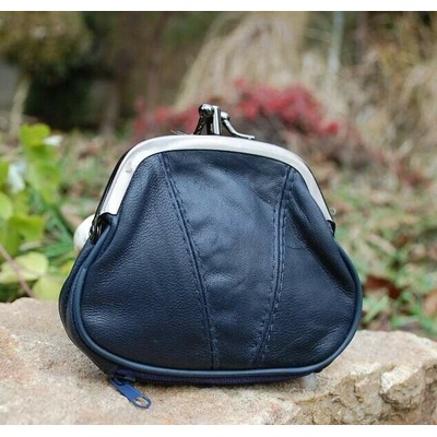 Dámská modrá malá peněženka na mince z kůže, případně různé drobnosti, ozdobně štepovaná, tmavé kování, dvě samostatné složky s kovovým uzávěrem a malá kapsa na zip. Do...