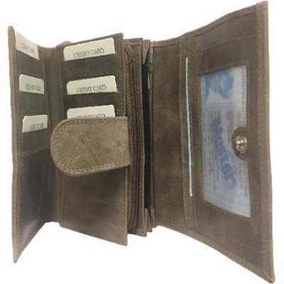 Kvalitní kožená dámská peněženka z pevné hladké hovězí kůže. 3 x přihrádka na papírové bankovky, 2 x zipová kapsa , 10 x přihrádka na kreditní karty, doklady nebo vizitky. Na zadní straně přihrádka.