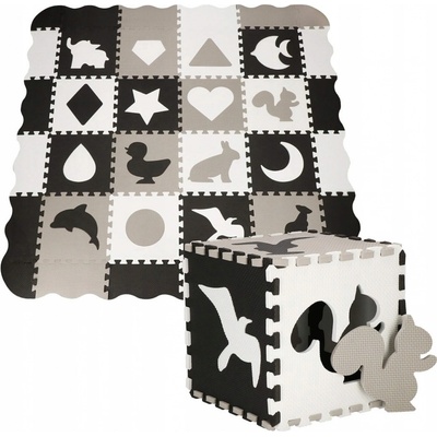 Pěnové puzzle MAXI 16 ks 150x150x1 cm zvířata šedo-grafitovo-bílé Pěnové podlahové puzzle s vroubkovaným povrchem a vyjímatelnými částmi, k vytvoření hrací plochy nejen do dětských pokojíčků, ale všude tam, kde si hrají děti a plovoucí podlaha, dlažba nebo linoleum...