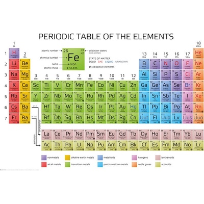 Periodická tabulka prvků bude vaším nepostradatelným pomocníkem nejen v hodinách chemie. Díky laminovaným deskám se tabulka nepoškodí a zůstane dlouhou dobu jako nová.