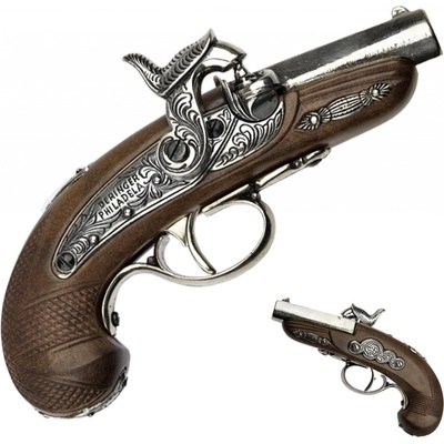 Replika Perkusní pistole "DERRINGER PHILADELPHIA" na kapslíky Replika historické zbraně model DERRINGER PHILADELPHIA USA 1862 od výrobce DENIX. Tato zbraň je skvělou volbou pro...
