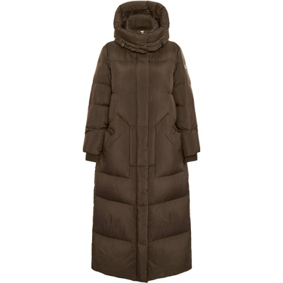 Olivově zelený dámský péřový kabát SKHOOP Hella Down v délce do půli lýtek unosíte ve městě, na horách nebo třeba na hokejových zápasech vašich dobrodruhů. Díky výplni z kachního peří je lehoučký, ale dokonale hřejivý. Pokud jste maminky "zmrzliny", je to ten pravý....