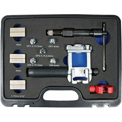 Pertlovací sada pro úpravu konců brzdových trubiček Ø 4,75 mm vylisováním připojovacího lemu podle norem DIN a SAE. - uplatní se zejména při zhotovování lemu / osazení na...