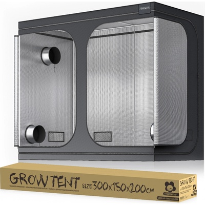 Pěstební stan VF 300L, 300x150x200 cm s pevným a odolným rámem a vyztuženými plastovými rohy. Stan je vybaven 16mm tyčemi o tloušťce 0,8 mm. Kvalitní tkanina 600D Oxford....