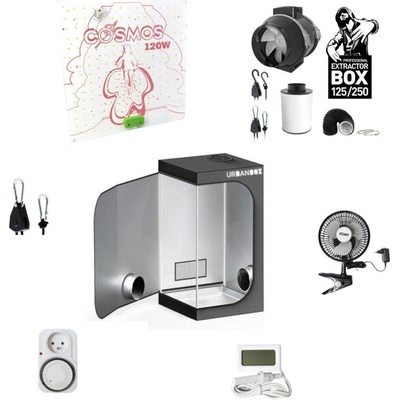 Kompletní grow box LED Cosmos 120W, 60x60x160 cm: - URBANBOX 60, 60x60x160 cm - Vanguard Hydroponics COSMOS LED Board 120W - Urban Mechanical Timer Socket, mechanické spínací...