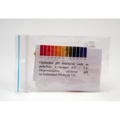 Balení obsahuje 100 proužků. Odhad pH vodných roztoků v rozmezí 0 - 12 ph. Zjištěné údaje se porovnávají s barevnou stupnicí na obalu.